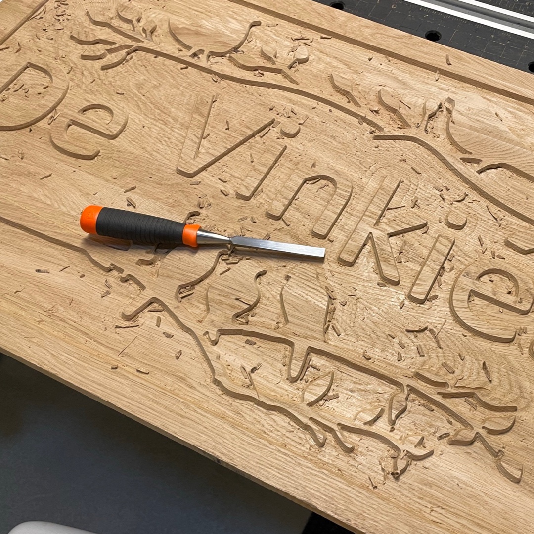 Een prachtig familiebord met opdracht. Een mooi proces waarbij stukken eikenhout tot tot een paneel zijn verlijmd. Ondertussen aan het schetsen gegaan en na akkoord het ontwerp omgezet in taal die de cnc kan uitvoeren. Dit mooie bord heeft onder een prachtig afdak een prominente plek aan huis gekregen.