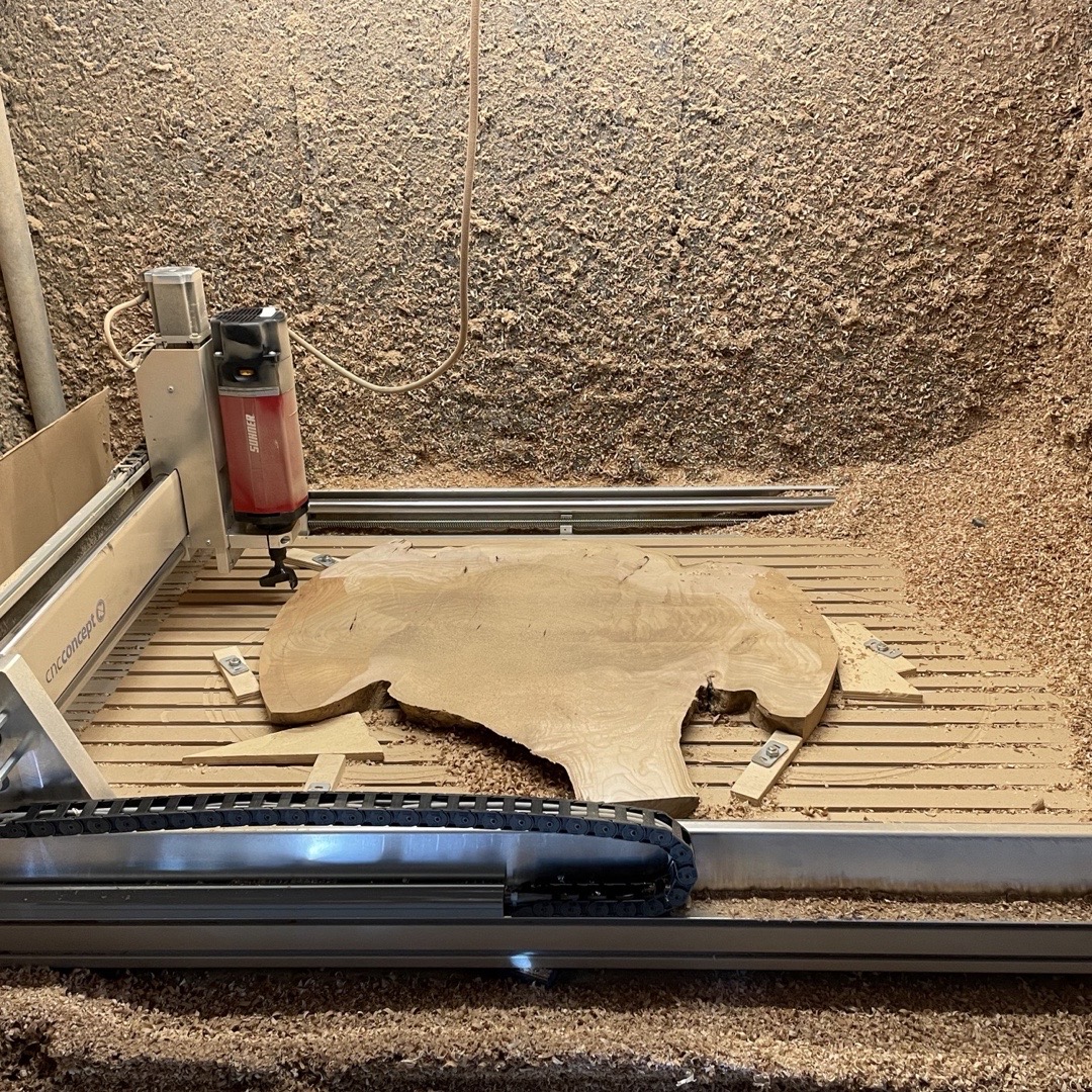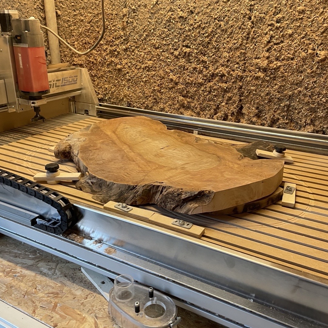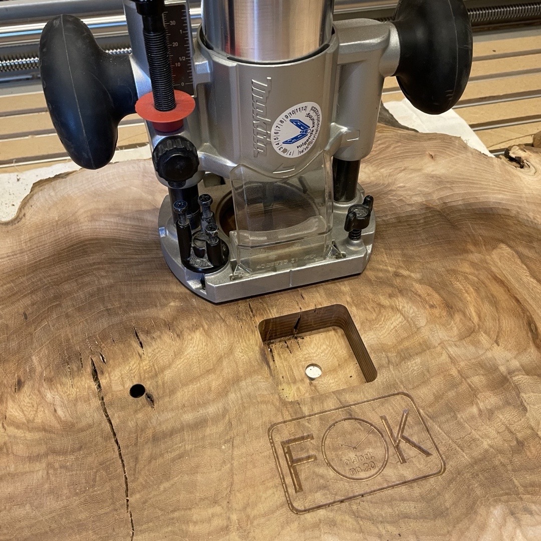 Grote wandklok gemaakt van een Burl van Iep met stalen ring. Wat deze klok uniek maakt is de Burl. Deze hebben een eigenaardige en een karakteristieke houtstructuur. Doordat het draad misvormt is kan het snel uitbreken. Zo zie je zowel horizontaal als verticaal op het hout de groeiringen. Het hout is daardoor redelijk moeilijk te bewerken omdat het gauw krom trekt. Ook uniek is de stalen ring die door Hans, van Las en Montagebedrijf Horlings, met de hand perfect rond is gewalst. De prachtige tekening in het hout komt door de afwerking met Rubio Monocoat mooi naar voren.